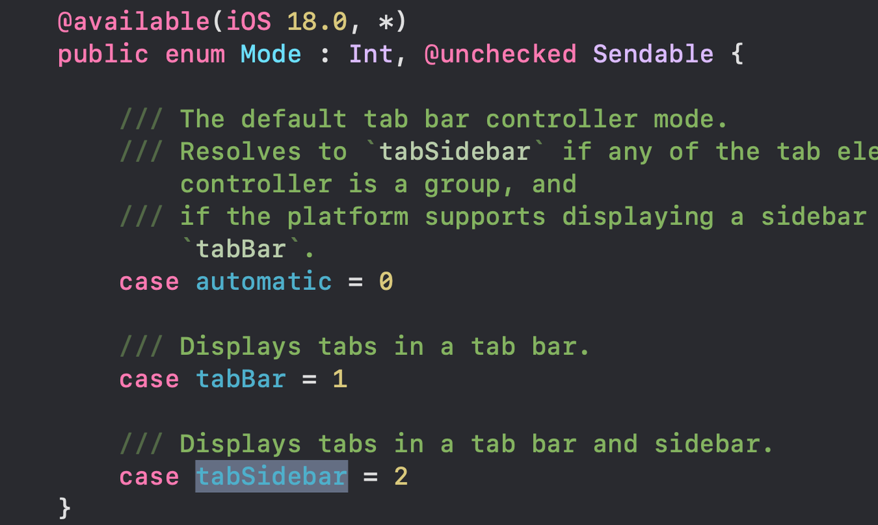 tabBarController.mode = .tabSidebar