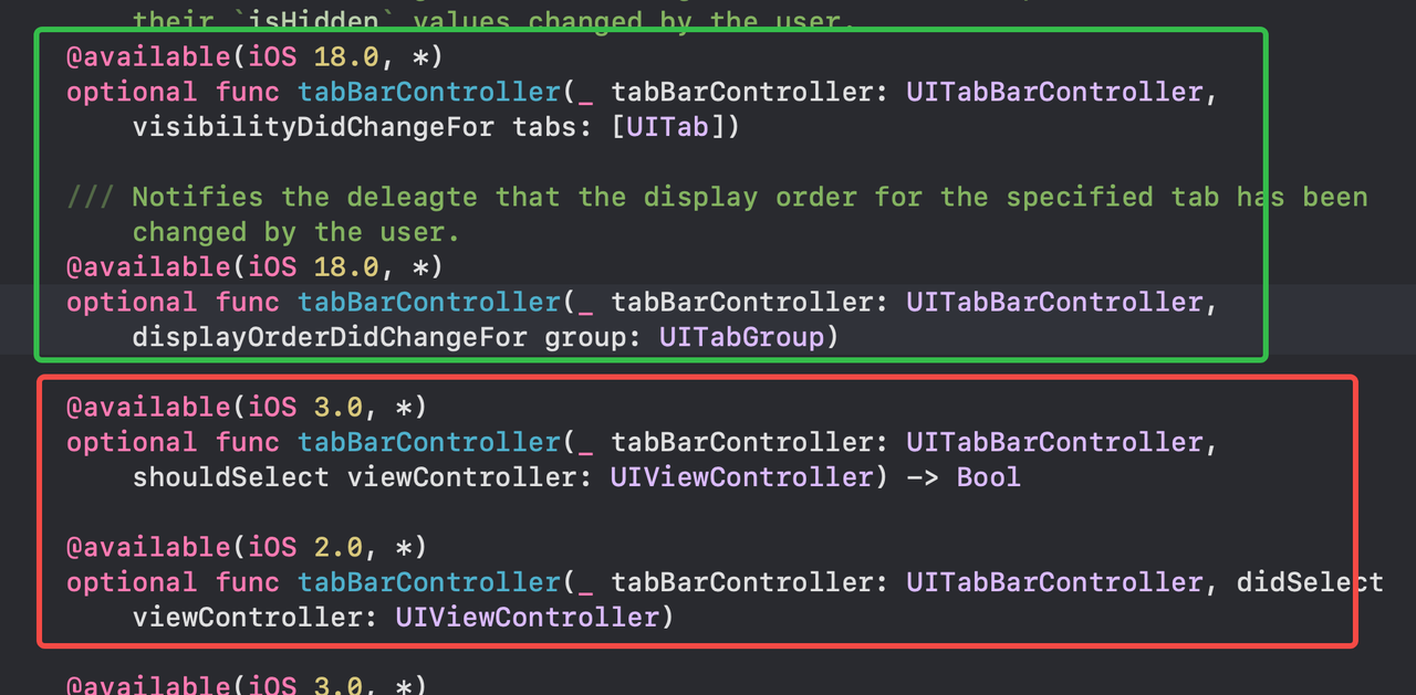 UITabBarControllerDelegate adds multiple UITab-related delegate methods.