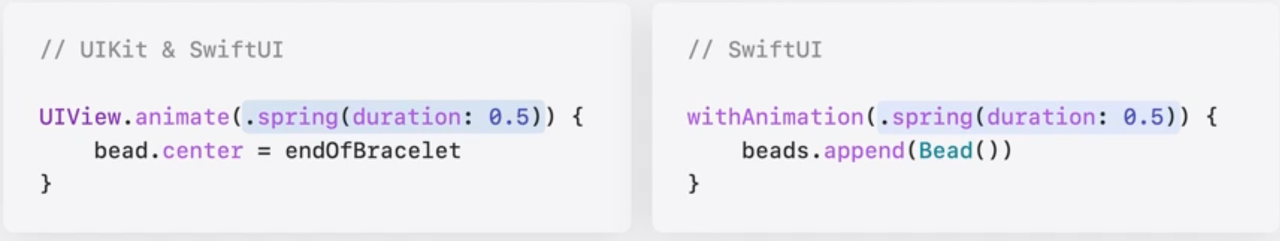 Use SwiftUI animations from AppKit and UIKit to create a consistent animation experience across apps that use multiple UI frameworks. In UIKit, use animate(with:changes:completion:). In AppKit, use animate(with:changes:completion:).