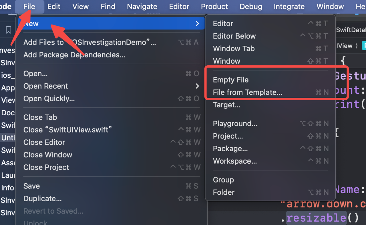 New File from Template...: Swift source files can be created quickly
